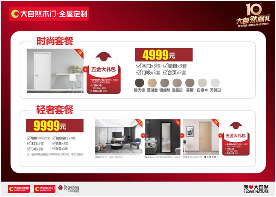 在10周年大型促銷季期間,大自然在“擔環保責任、普健康生活、做健康家居”的企業使命推動下,針對不同客戶需求,制定了普惠、省心、個性兩大套餐。