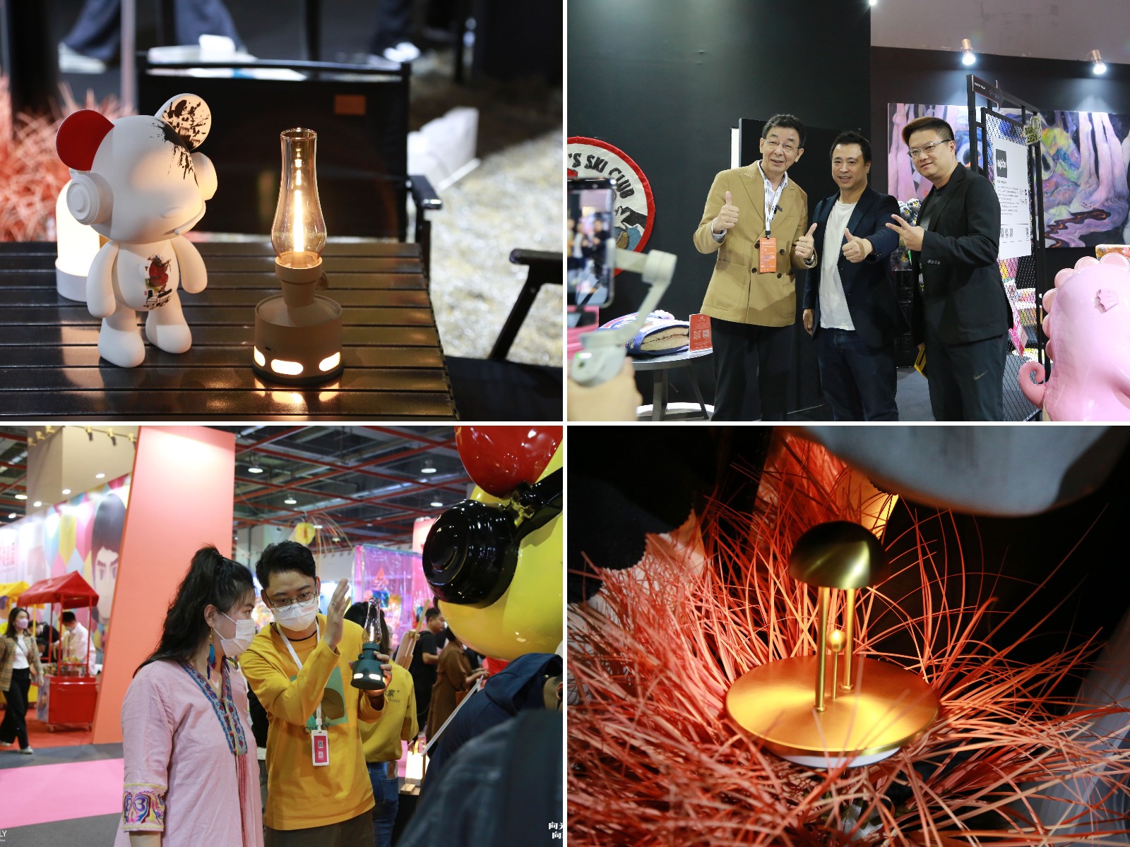 新特麗在南豐國際會展中心與香港環亞聯合創始人楊志偉等十余位優秀設計師聯合打造的藝起潮玩主題展,也讓人眼前一亮,展現了新特麗后裝燈飾的藝術潮玩魅力。露營區的露營小燈、LED煤油燈、提梁手燈不僅觀賞價值高,在各種真實的生活場景中也十分適用,讓觀展人感受到它們所傳達的一種輕松、浪漫的生活態度。