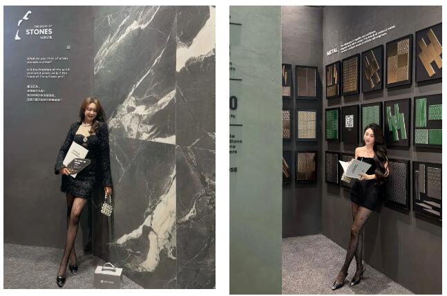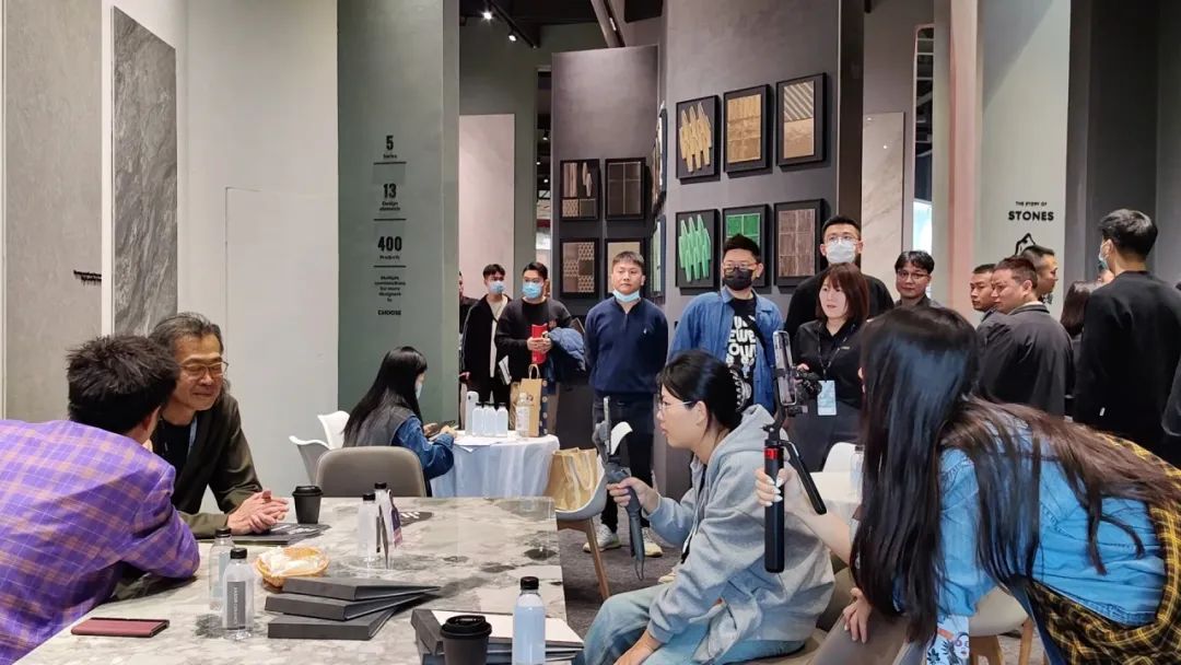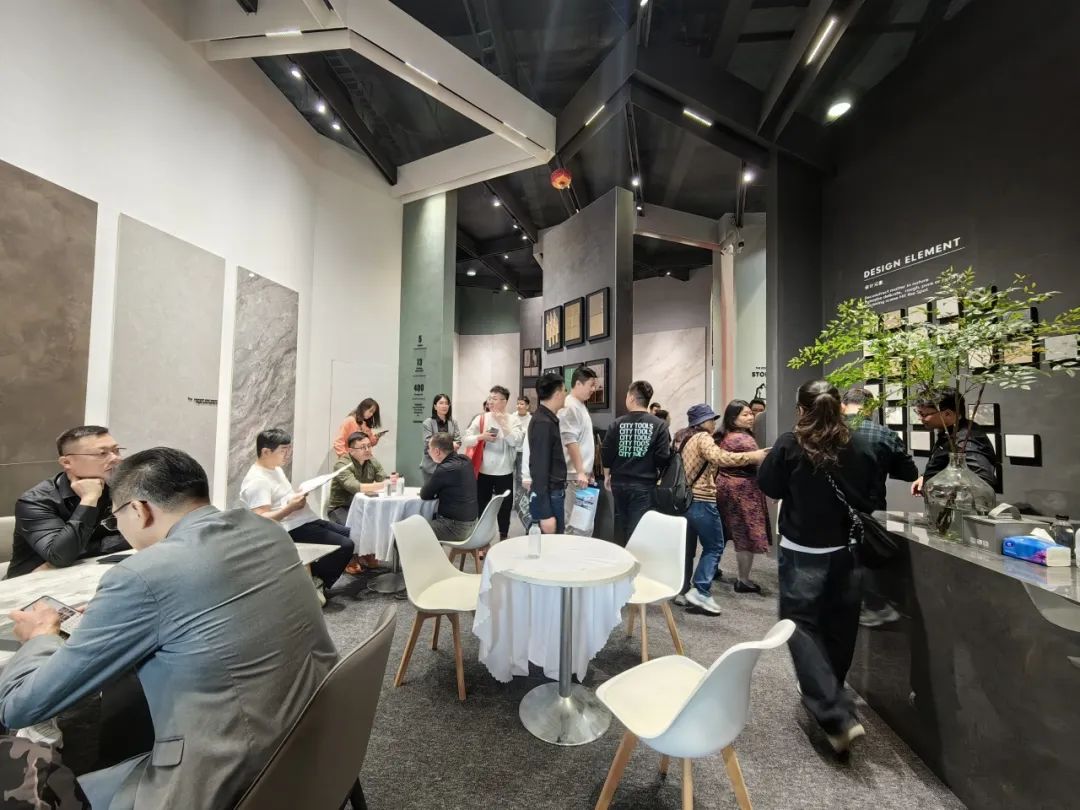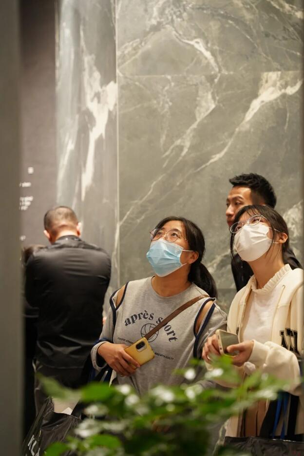 展館展示了以石元素為靈感的1.2*1.2米產(chǎn)品系列——【爍石】【酷石】,表面采用國(guó)際最新工藝:定位膠水干粒,肌理清晰可見(jiàn),手感體驗(yàn)佳。此外,還可以讓設(shè)計(jì)師們近距離觸碰和感受輕奢連紋大理石、銷冠產(chǎn)品【云影】及最受歡迎的手工磚等一系列產(chǎn)品,大大滿足了設(shè)計(jì)師們對(duì)空間選材的靈感與創(chuàng)意,吸引無(wú)數(shù)設(shè)計(jì)師駐足停留。