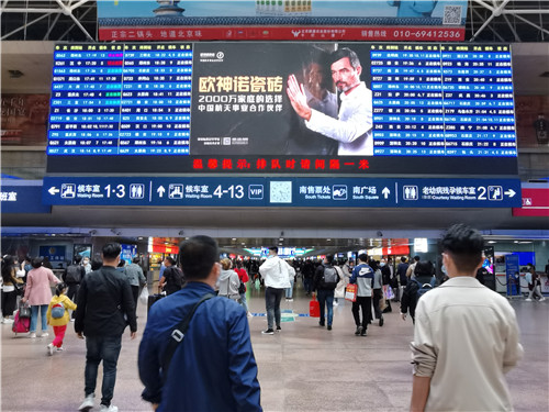 首次發(fā)車的“歐神諾號”,候車廳內(nèi)歐神諾廣告隨處可見,列車身上印著的歐神諾LOGO鮮明奪目,整列車廂座位枕頭巾廣告整齊地向每一位乘客致敬。歐神諾瓷磚的品牌力量帶給乘客別樣印象,散發(fā)品牌魅力,彰顯品牌高度。歐神諾銷售經(jīng)營管理中心總經(jīng)理黃浪平、永達傳媒事業(yè)一部總經(jīng)理王敬平等嘉賓及眾多媒體朋友出席本次首發(fā)儀式,共同見證這一歷史時刻。