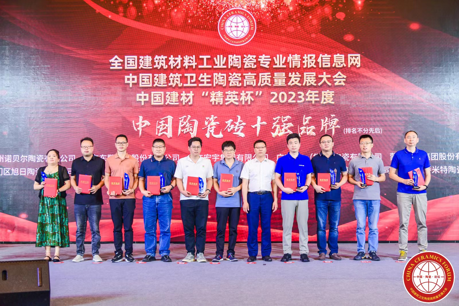 6月29日,在中國●??诼≈嘏e行中國建筑衛生陶瓷高質量發展大會暨第十五屆中國建筑衛生陶瓷科技大會!此次大會組委會針對中國建筑衛生陶瓷企業在市場上銷售的產品進行性能和安全性測評(尺寸及表面質量、物理性能、化學性能和安全性能),將結果進行發布,并舉行中國建材“精英杯2023年度頒獎活動?;葸_瓷磚在此次活動中榮獲中國建筑衛生陶瓷產品”質量金獎”““陶瓷磚十強品牌”兩項大獎。