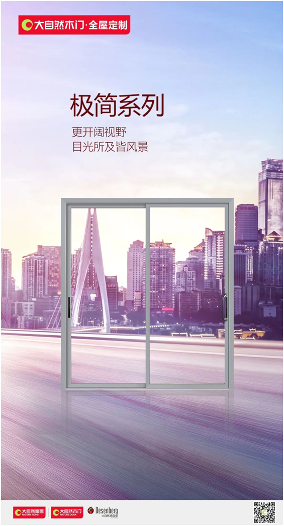 大自然觀景臺:大自然推拉門,極窄變寬設計,視野更開闊;汽車級中空鋼化玻璃,保暖隔熱,通透性更好。大自然推拉門的運用,把家秒變成大自然觀景臺。
