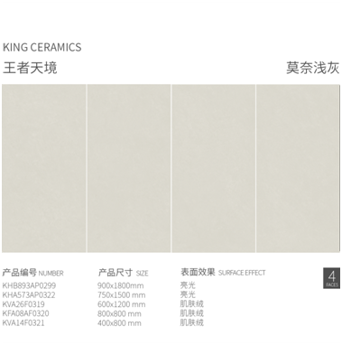 同時,王者防滑磚采用子母配套系列規格設計,一個紋理多種規格,通鋪全屋,不同規格搭配不同空間,讓空間看上去更加的統一、大氣。