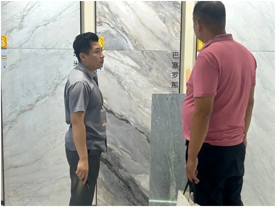 展會期間,堡瑪世嘉陶瓷展廳人氣節節上升。雖然天下著微微細雨,但絲毫也不影響客商前來堡瑪世嘉展廳打卡。堡瑪世嘉憑借著大手筆的廣告投入,差異化的歐泊石新品,以及專業人員的詳細解說,獲得客商的一致好評,在陶博會熱度洶涌上漲!