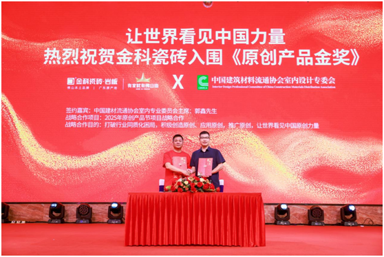 會(huì)上,金科與《中國(guó)泛家居原創(chuàng)產(chǎn)品節(jié)》達(dá)成戰(zhàn)略合作,攜重磅發(fā)布的國(guó)家專(zhuān)利技術(shù)認(rèn)證新品狀元彩晶系列逐鹿原創(chuàng)產(chǎn)品金獎(jiǎng)。狀元彩晶系列采用原創(chuàng)立體懸浮彩晶工藝,展現(xiàn)品牌產(chǎn)品的狀元實(shí)力,用科技重塑瓷磚美學(xué)!
