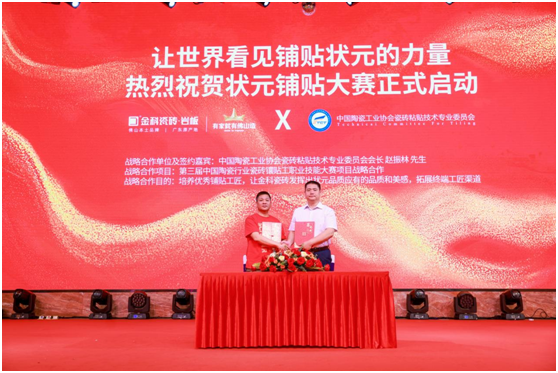 此外,金科以"狀元品質(zhì)塑造者"之姿與締結(jié)"第三屆中國(guó)陶瓷行業(yè)瓷磚鑲貼工職業(yè)技能大賽"戰(zhàn)略合作,志在培養(yǎng)全國(guó)優(yōu)秀鋪貼工匠、展示金科狀元產(chǎn)品力、助力全國(guó)終端開(kāi)拓工匠營(yíng)銷(xiāo)渠道。