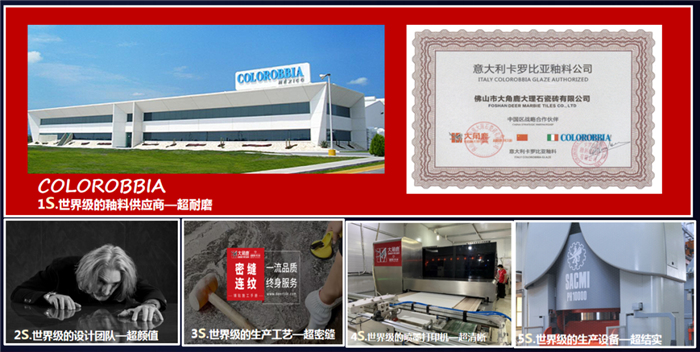大角鹿擁有中國陶瓷工業(yè)協(xié)會授予的“中國超耐磨陶瓷新材料研究院”、“大理石瓷磚研究所”和聯(lián)合意大利卡羅比亞釉料公司成立的“超耐磨鉆石釉中國研發(fā)中心”三大研發(fā)中心以及中國建筑材料流通協(xié)會授予的“中國超耐磨陶瓷新材料示范基地”。大角鹿代表著全球最嚴格的耐磨標準,是瓷磚行業(yè)革命性產品,讓大理石瓷磚進入超耐磨時代!