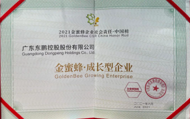 勇擔大國品牌責任|東鵬控股榮獲“2021金蜜蜂企業社會責任·中國榜”成長型企業