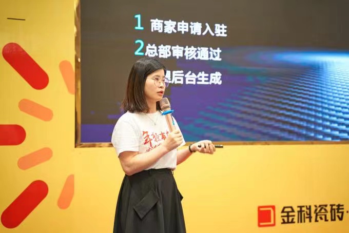 (金科瓷磚策劃主管楊靈講解智慧門店系統)